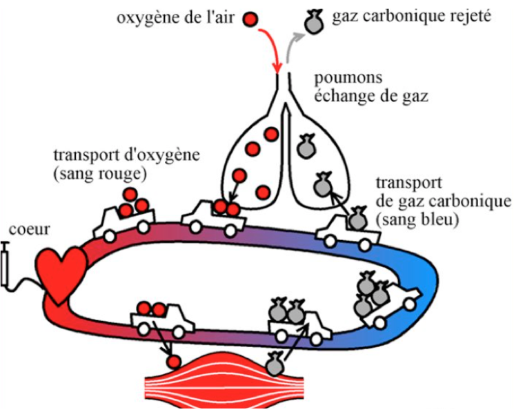 | Transport de l’oxygène | L’oxygène est transporté par le sang jusqu’aux muscles, grâce à la respiration. |